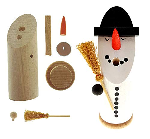 Hess Holzspielzeug 40022 – pysselset rökelseman 7 delar, av trä, design snögubbe med kvast, ca 13 cm, dekoration för advent- och jultiden från Erzgebirge
