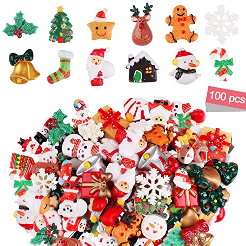 Kalolary Julprydnader, blandade hantverksföremål i harts, miniatyrföremål med platt baksida, julprydnader i form av en jultomte, snögubbe, träd, klocka, hartsberlocker, dekoration för telefonfodral,