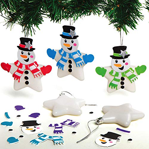 Baker Ross AX514 Snögubbe stjärnkulor, 6 stycken, gör-det-själv julgranskulor, snögubbe, dekoration, barnkonst och hantverk, sorterade