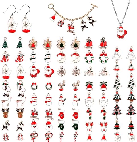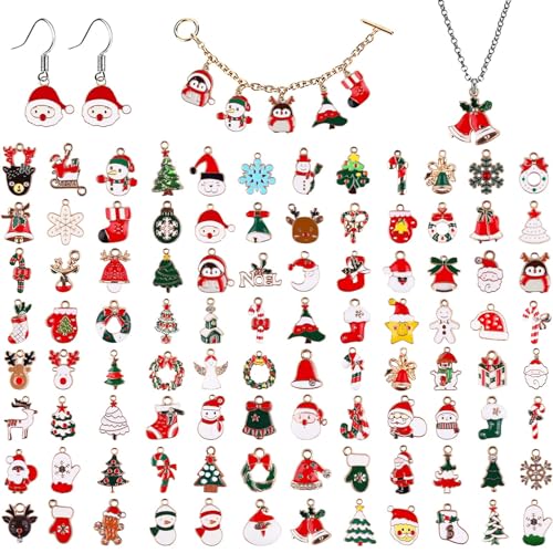 Kalolary 84st Julemalj Guldberlocker för smyckestillverkning, diverse guldberlocker till jul Snöflinga Snögubbe Trädhatt DIY Halsband Armband Örhängen Göra Crafting Dekoration