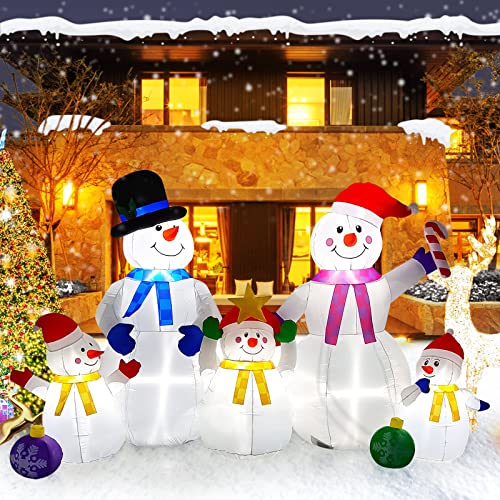 EBANKU 150 cm jul uppblåsbara dekorationer med inbyggda lysdioder, jul hög enorm snögubbe utomhus en familj med fem söta dekorationer för julfest inomhus trädgård hem familj gård gräsmatta dekor