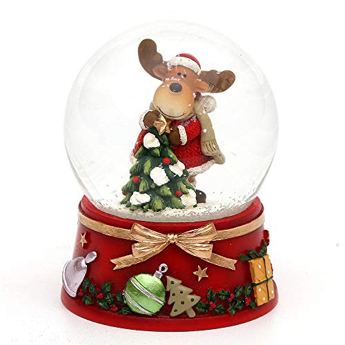 Dekohelden24 Snökula med älg och röd bas, mått L/B/H: 7 x 7 x 8,5 cm kula Ø 6,5 cm, gran, 501472-gran