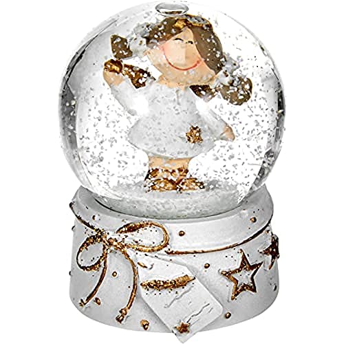 Dekohelden24 Mini-snökula med ängel, vit/gyllene bas, mått L/B/H: 4,5 x 4,5 x 6,5 cm kula Ø 4,5 cm, 501423