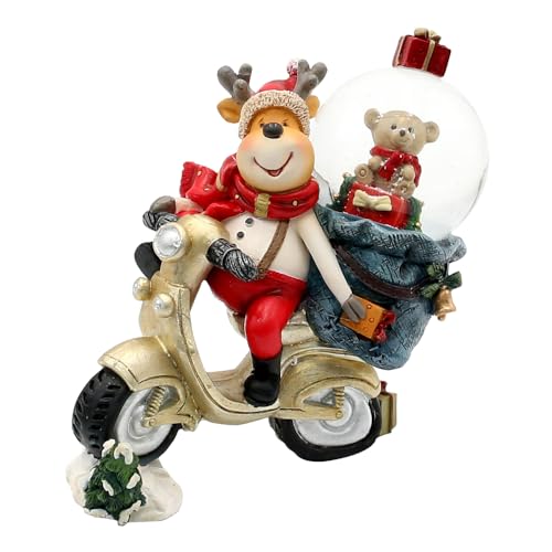 Snökula älg på skoter – motorcykel, L/B/H/Ø kula 11 x 6 x 11 cm Ø 4,5 cm