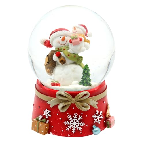 Dekohjälten24 snökula snögubbe familj på julbas med lekdosa, melodi: Tyst snöskot som låser, L/B/H/Ø kula 10 x 10 x 15 cm Ø 10 cm.
