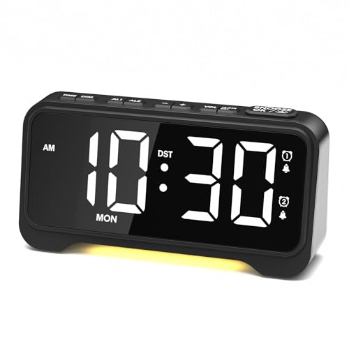 Digital Väckarklocka, LED Väckarklocka Digital med 2 Alarm, Snooze, 5 Ljusstyrka och Volym Justerbar, 12/24H, Nätdriven, 3 Nivåer Nattljus, Weekend Läge, Digital Klocka för Säng Sovrum