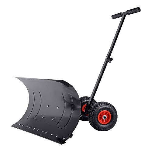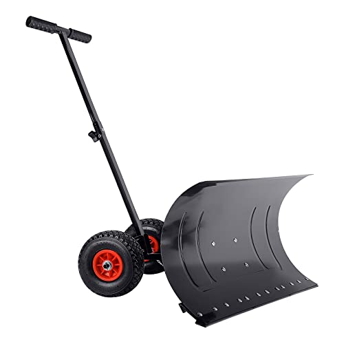 ORIENTOOLS Kraftig snöspade, justerbar snöpusher med 15 cm hjul, effektiv snöplog lämplig för uppfart eller trottoarrengöring (63,5 cm blad)