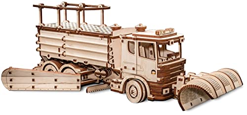 EWA EcoWoodArt 3D träpussel för ungdomar och vuxna – mekanisk snöplog-lastbilsmodell – gör-det-själv-byggsats, självmontering, inget lim krävs