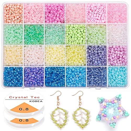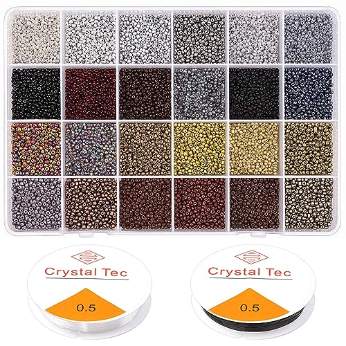 Prettme 12 000 stycken 2 mm 12/0 mini-rocaillespärlor att trä på med elastiskt snöre, för armband, halsband, örhängen, smycken och gör-det-själv-hantverk