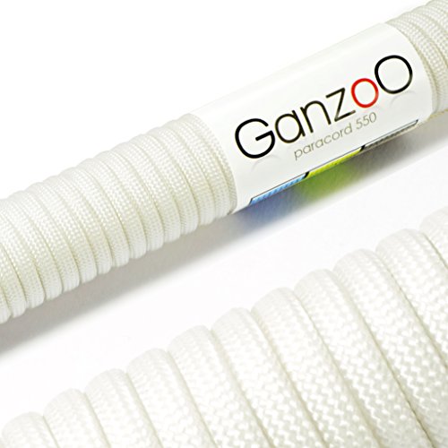 Ganzoo Paracord 550 lina vit 4 mm snöre typ 3, nylon och polyester, perfekt för pyssel av hundkoppel, halsband, armband/camping överlevnad och utomhus 30 meter universalrep 7 innertrådar