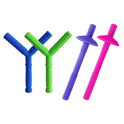 4-pack silikon tuggbara sensoriska halsband, massageband, bärbar snöre, barn, pojkar, tandning, ångest, kräsna