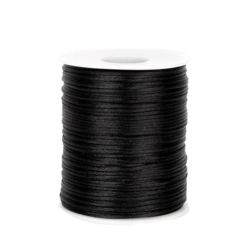 1,5 mm x 100 m snöre svart, virkad väska snöre svart, armband snöre slitstark svart, polyestersnöre för armband, polyestertråd för halsband flätat, smycketillverkning, gör-det-själv-hantverk