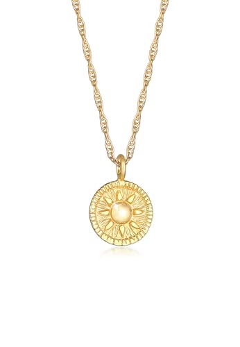 Elli halsband damer snöre mynt hänge rund sol vintage trend i 925 sterlingsilver, 420, Sterlingsilver, Utan
