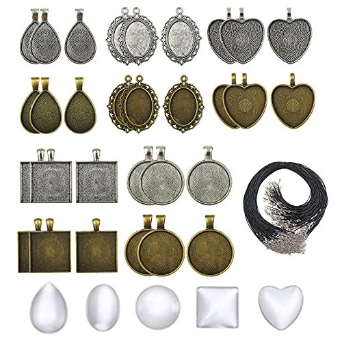 DUGYIRS 30 stycken hängen brickor med 30 stycken cabochon-glas och 30 stycken halsband snöre för DIY souvenir smycken foto hänge pyssel