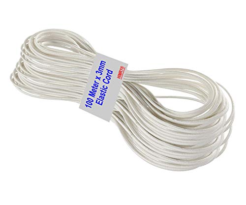 HIMRY 100 meter 3 mm gummisladdspole, elastiskt snöre, pärlsnöre, elastiskt rep för gör-det-själv, utomhus, kläder, hantverk, smycketillverkning, armband, halsband ... vit, KXB5090-vit