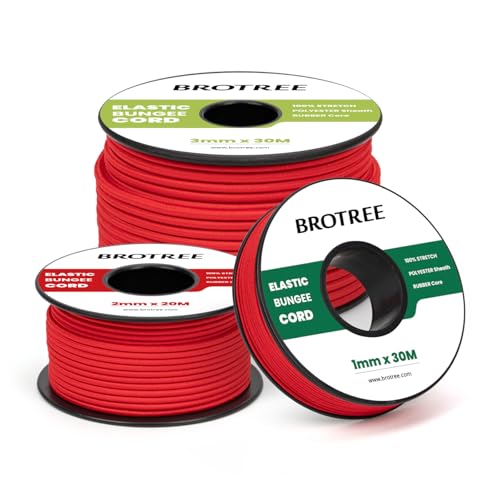 Brotree Elastiskt Snöre Elastisk Sladd 3mm x 20m Elastisk Tråd Gummisnöre för DIY, Hantverk, Sömnad, Pärlor, Smyckestillverkning, Halsband, Armband, Tältstänger, Ryggsäck - Röd