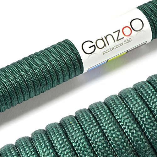 Ganzoo Paracord 550 rep mörkgrön 4 mm snöre typ 3, nylon och polyester, perfekt för pyssel av hundkoppel, halsband, armband/camping överlevnad och utomhus 15 meter universalrep 7 innersnören