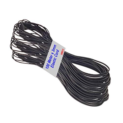 HIMRY 100 meter 3 mm gummisladdspole, elastiskt snöre, pärlsnöre, elastiskt rep för gör-det-själv, utomhus, kläder, hantverk, smycketillverkning, armband, halsband ... Svart, KXB5090-svart