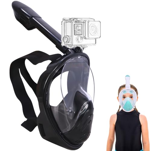 Wsobue Dykmask för Barn, Helmask Snorkelmask Anti-Dim, Anti-Läck Lätt Andning Torr Top Snorkel Set för barn i åldern 5-14 (Svart för Barn)