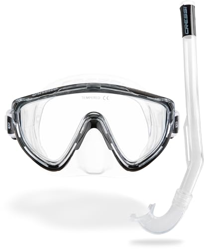 CRESSI Tino & Scilla Black/Titanium - Adult Combo Set Tino Snorkeling Mask and Snorkel Scilla, Black/Titanium, One Size