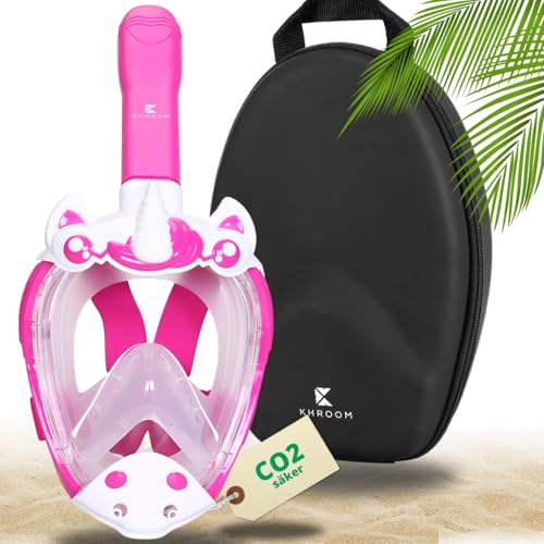 Khroom CO₂-säker snorkelmask för barn från 3 år | Helmask för snorkling med haj- och enhörningsdesign | Läckagesäker | Lätt att andas | Simutrustning | Semesterfavorit (rosa + mjukt fodral)