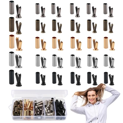 50 uppsättningar snörändar metall, 5 färger snörändstycke metall kvalitetslegeringar snörstopp metall, snörändar metall för skosnören spetsar tå huvtröja gör-det-själv reparationer skosnören