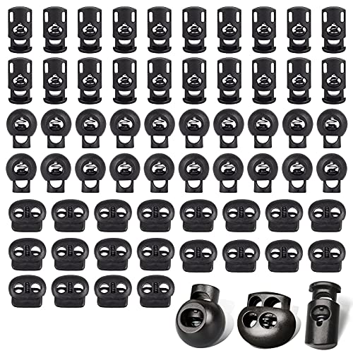 sinzau snörstopp/sladdklämma 60 stycken, fjäderdraglås för dragsko, plast dubbel/enkelhåls snörände, svart, svart, 5 mm/0,19 Zoll ; 8 mm/0,31 Zoll