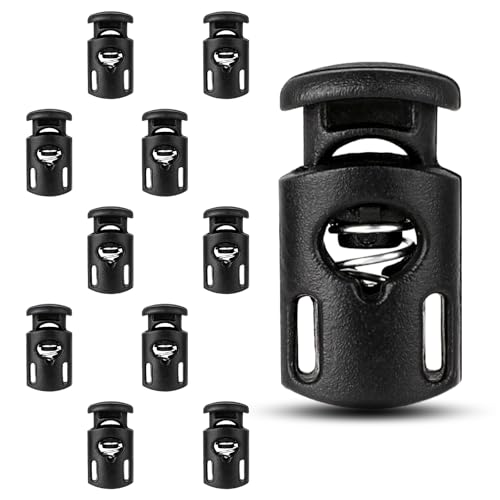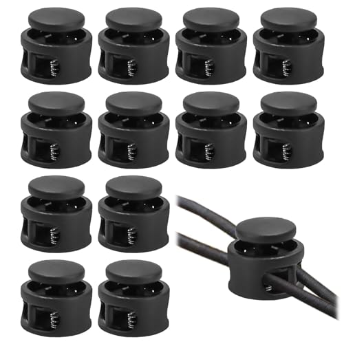 12 stycken snörstopp, plastförslutningar, sladdklämma, 2 hål, snabbkopplingsskor, skosnören fjäderspänne, svarta skosnören, klämmor för dragsnöre, väskor, kläder, hatt och ryggsäckar