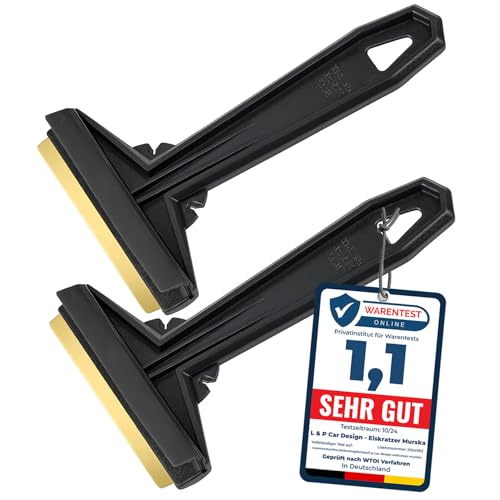Isskrapa bil [2 stycken] – testvinnare 2024* – snabb, enkel och skonsam – Murska skivskrapa bil mässing – effektiv snöskrapa bil – premium höfter och mässingsblad – Finland svart-blå