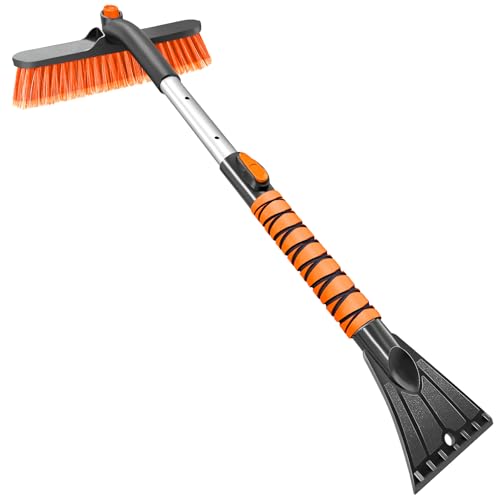 HEEYA isskrapa bil, 84 cm snöborste utdragbar snöskrapa och borste med skumhandtag för vindruta, fönster, SUV, lastbil – orange