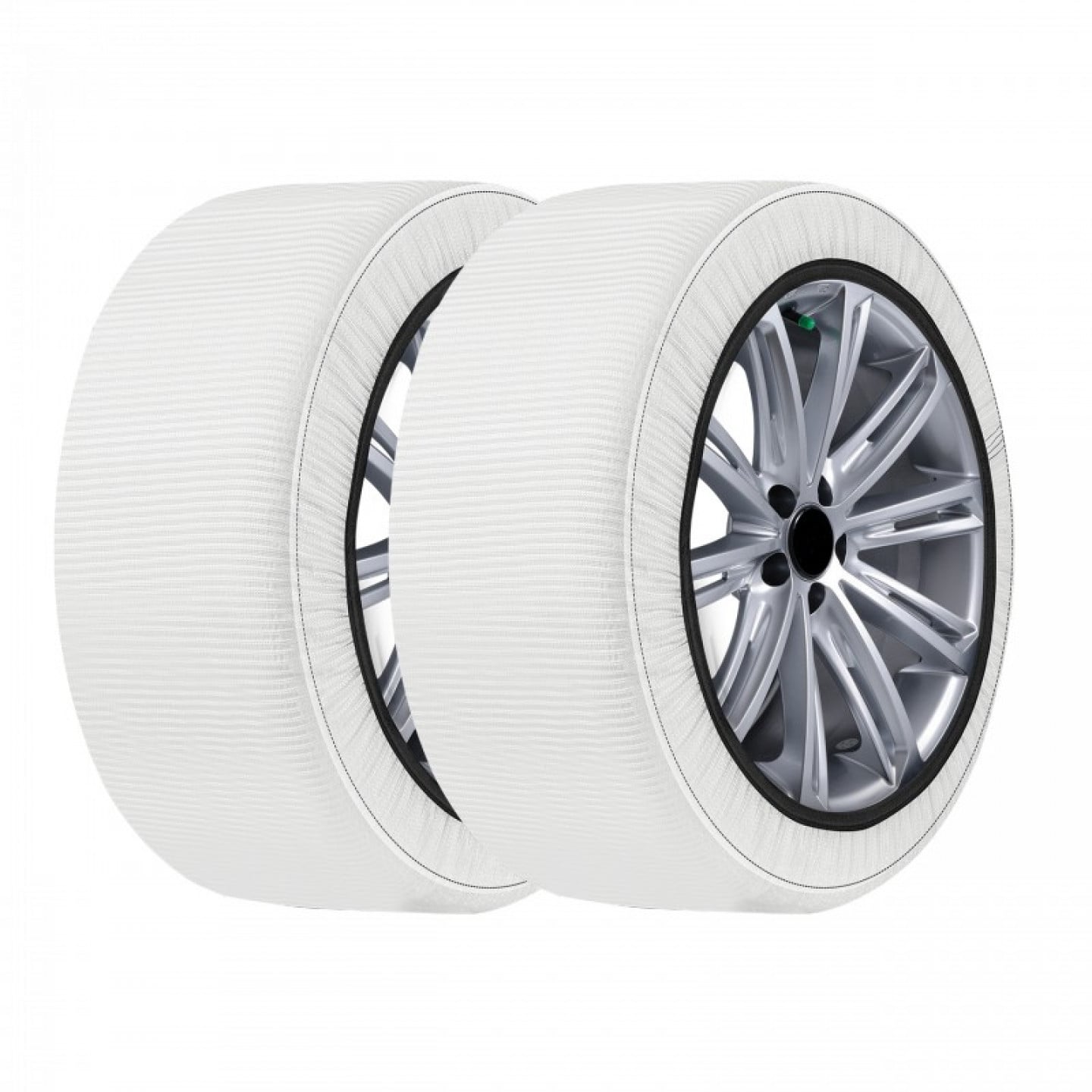 Start Set med 2 vita snöstrumpor | Storlek XXL | EN 16662-1 Godkänd | i tyg | Lämplig för bilar - SUV - kommersiella fordon | Hjulskydd | Lätt att montera | Däckstorlek inuti