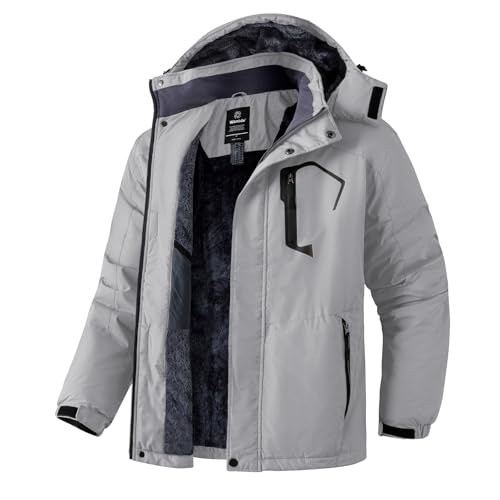 Wantdo Bergsskidjacka för män vattentät vinterrock med huva vindjacka varm snowboard jacka vindtät utomhusjacka, Grå, XL