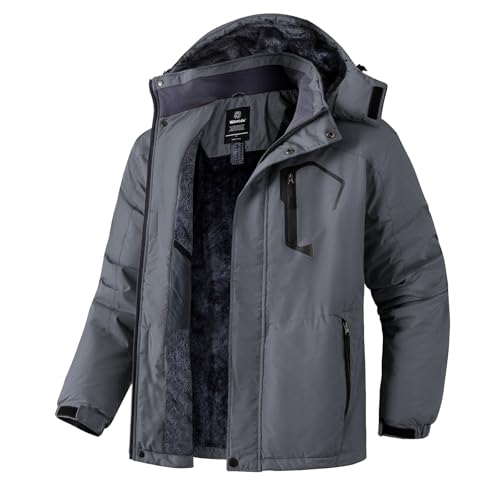 Wantdo Bergsskidjacka för män vattentät vinterrock med huva vindjacka varm snowboard jacka vindtät utomhusjacka, Djupgrått, XL