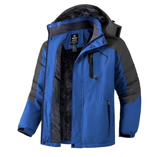 KEFITEVD Skidjacka för män andas varm fodrad vinterjacka med avtagbar huva snowboardjacka vattentät utomhusjacka, Kungsblå, XL