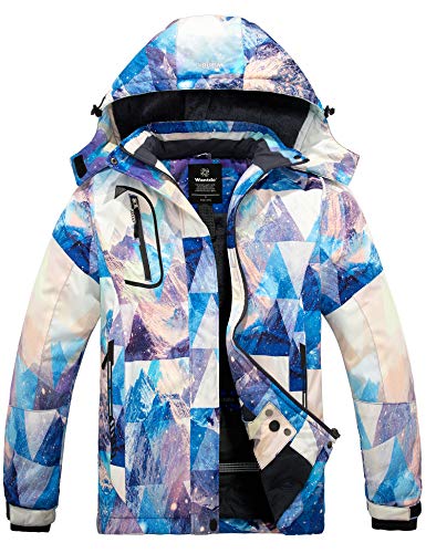 Wantdo Varm skidjacka för kvinnor med fleece, vattentät snowboardjacka, med huva, bergsrock, vindtät regnrock, Berg flora, M
