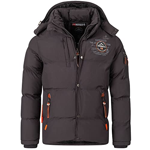 Geographical Norway Quiltad jacka vinterjacka för män – fodrad varm anorak – Outdoor SKI snowboardjacka för vinter/höst i bunt med UD Beanie, verv darkgrey, L