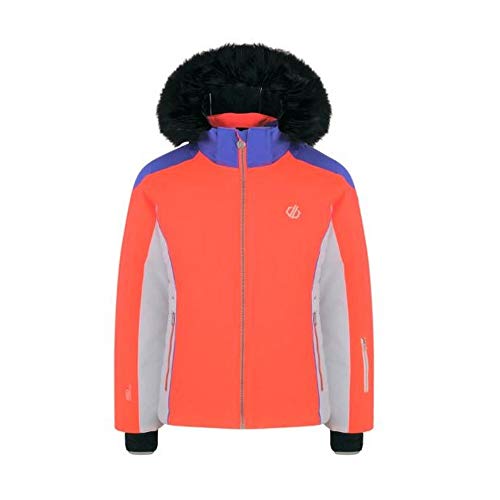 Dare2B flickas stora vattentäta och andningsbara högloft isolerade skid- och snowboardjacka med snökjol och fuskpälshuva Fiery Coral/Simply Purple 13