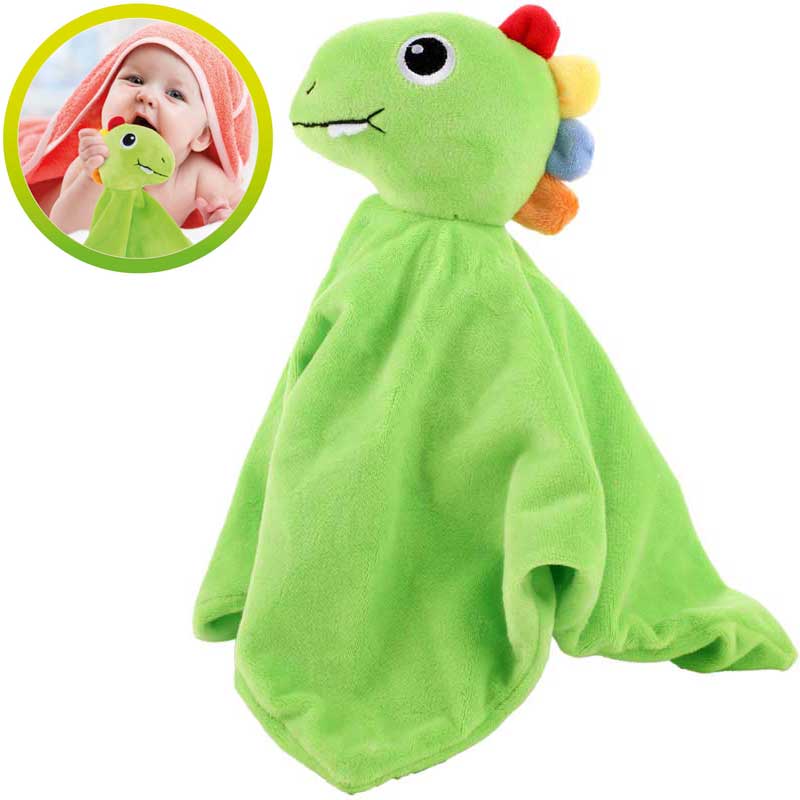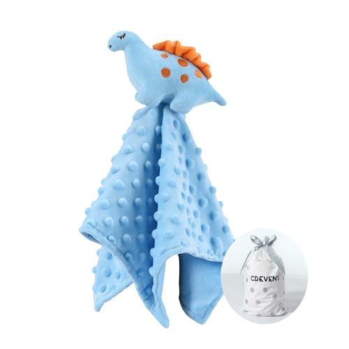 CREVENT Snuttefilt, mysig, mjuk, baby, för pojkar, utstickande prickar på framsidan + sherpa-baksida med djuransikte, blå dinosaurie