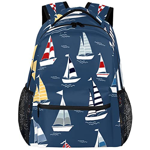 Tecknat båtmönster ryggsäck lätt vattentät reseryggsäck hav snygg ryggsäck för män kvinnor, mång, L