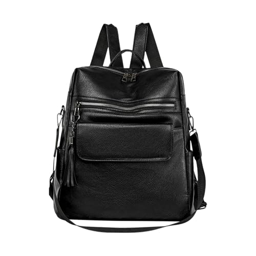 Dam PU-läder bokväska | trendig högskola ryggsäck med stor kapacitet för skola, arbete och resor | snygg multifunktionsväska med dragkedja med tofs och justerbara remmar för daglig användning", Svart