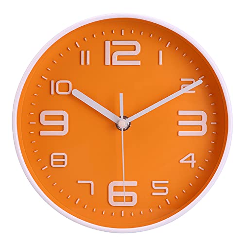 Topkey 20 cm tyst väggklocka lättlästa stora siffror icke-tickande rund snygg modern klocka dekorativ för kök hem matsal och kontor orange