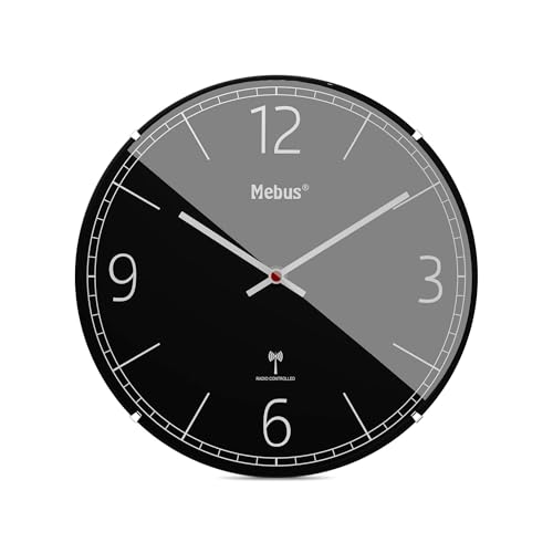 Mebus Trådlös väggklocka, ljudlös, kupolglas, ramlös, svart, modell 12985 – snygg och exakt