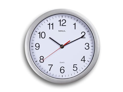 Maul Väggklocka Maulrun Ø 25 cm, Snygg Kvartsklocka Med Automatisk Tidsinställning, Perfekt För Vardagsrum, Sovrum, Kök, Arbetsrum Och Kontor, Lättläst Med Stora Siffror, Silver
