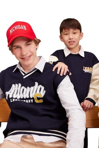 DeFacto långärmad tröja och sweatshirt för pojkar – snygga barnkläder för den kalla årstiden, tröja för barn, marinblå, 13-14 år