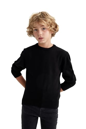 DeFacto långärmad tröja och sweatshirt för pojkar – snygga barnkläder för den kalla årstiden, tröja för barn, normal passform, crew neck, svart, 5-6 år