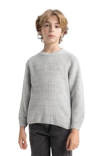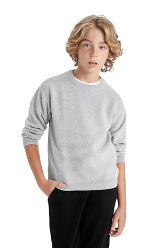 DeFacto långärmad tröja och sweatshirt för pojkar – snygga barnkläder för den kalla årstiden, tröja för barn, Grå melange, 11-12 år