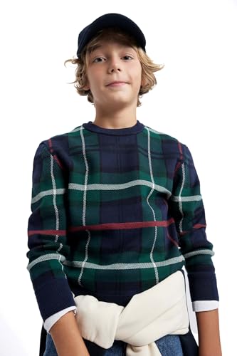 DeFacto långärmad tröja och sweatshirt för pojkar – snygga barnkläder för den kalla årstiden, tröja för barn, normal passform, crew neck, marinblå, 11-12 år