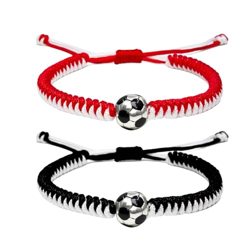 Moguri 2 st fotbollsarmband för män kvinnor och barn – snygga tillbehör för fotbollsfans Team Spirit Gifts för pojkar flickor 8–12 och Game Decor, svart och röd