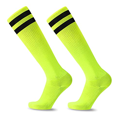 EQLEF Fotbollsstrumpor för barn långa, bekväma tunna sektion fotbollsstrumpor andas, snygga fotbollsstrumpor för pojkar och flickor från 6-10 år, gUL, 6-10 Years
