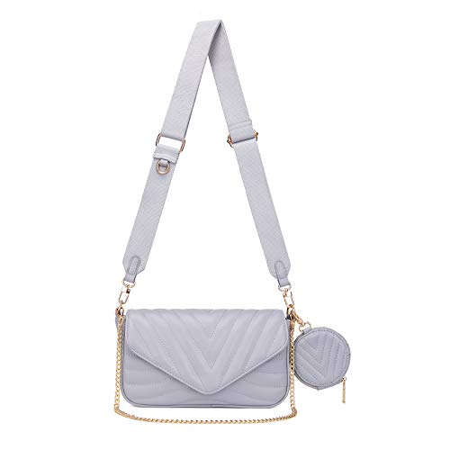 Små quiltade axelremsväskor för kvinnor snygga designerväskor och handväskor med myntväska inklusive 2 storlekar väska, Grå, Small